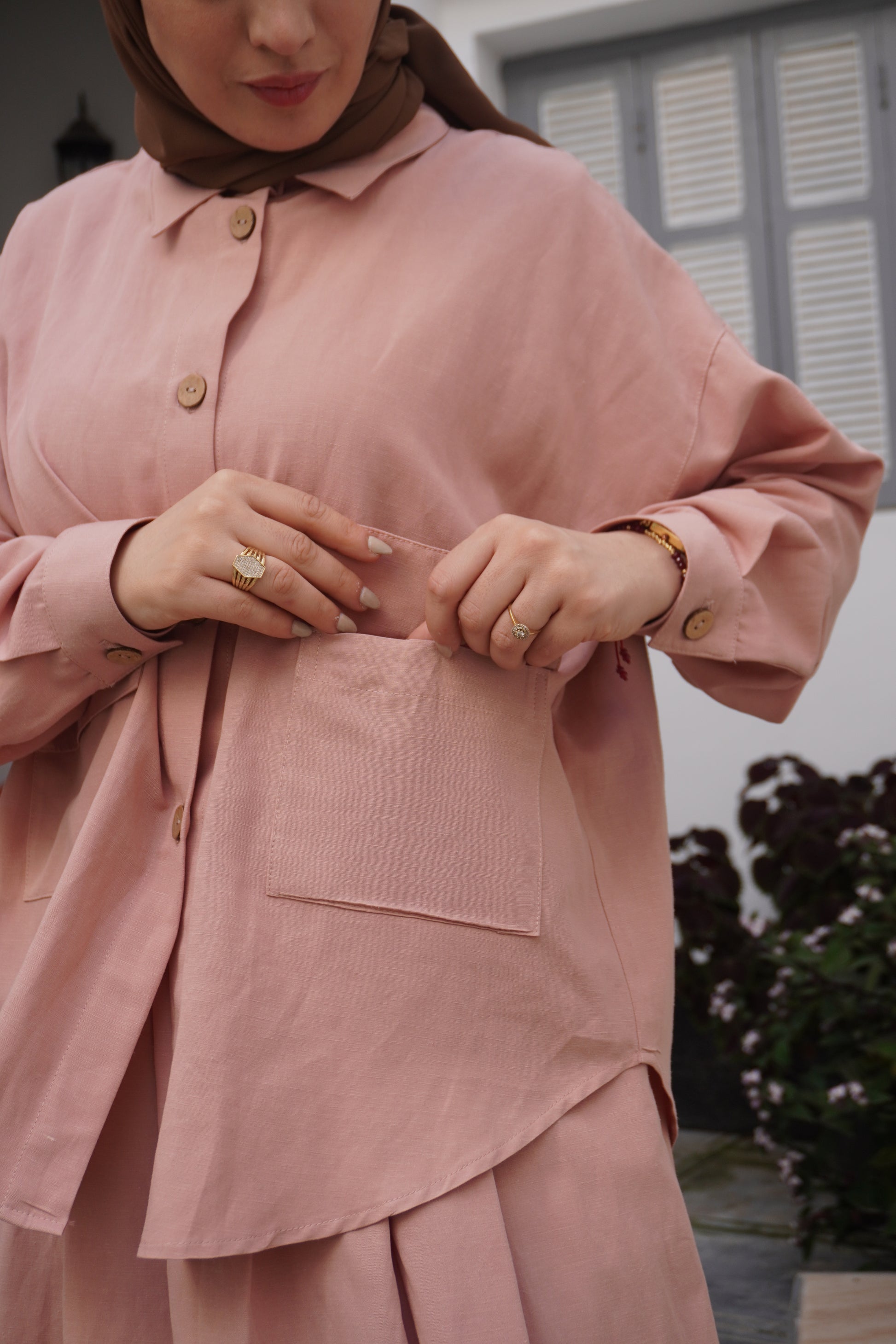 Soyez à la hauteur cette saison grâce à notre ensemble à la fois élégant et pratique. Cet ensemble se compose d'une chemise et d'une jupe en tissu lulan de première qualité.