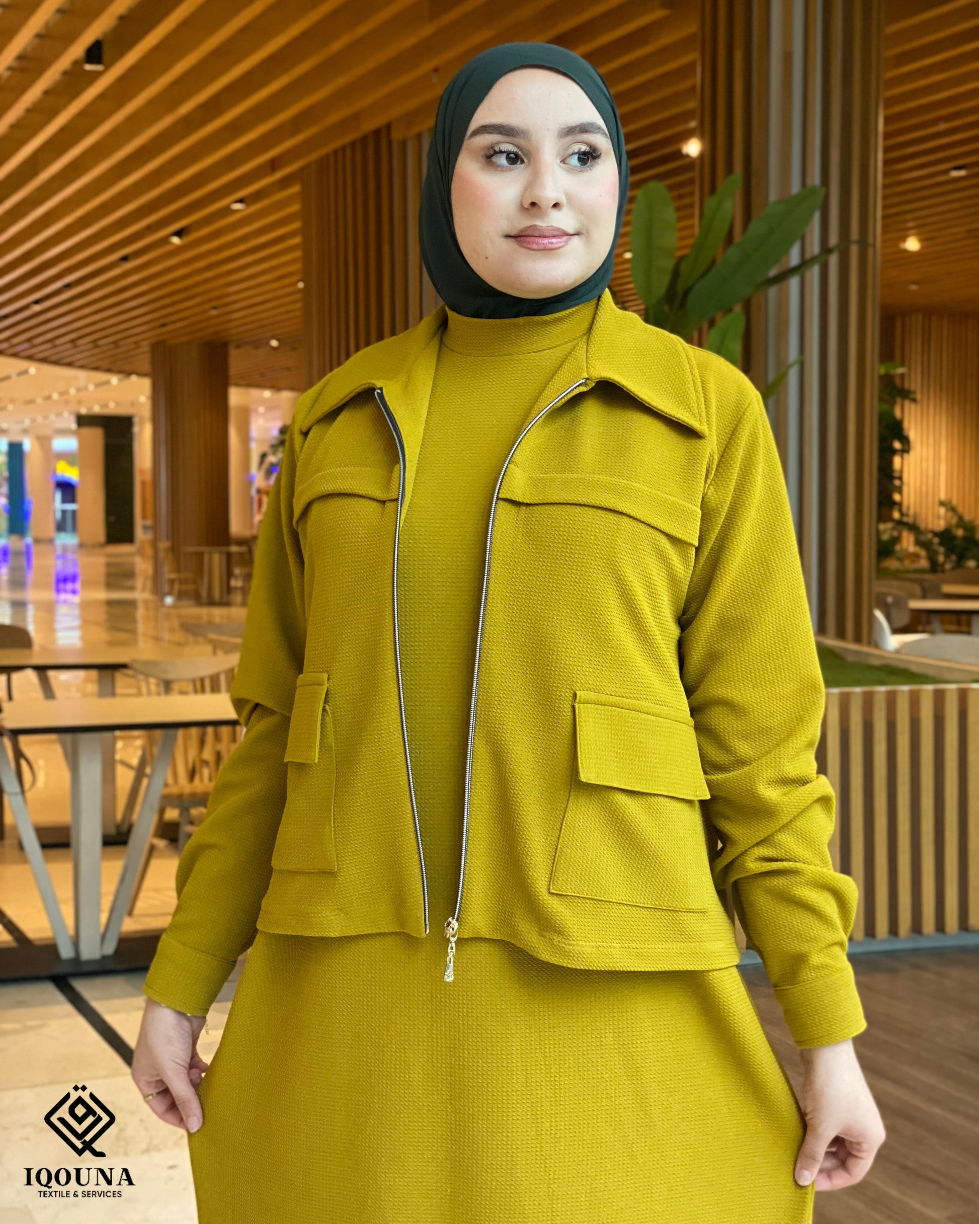 Découvrez un look irrésistible avec notre ensemble composé d'une robe élégante et d'une veste vert citron, la couleur tendance du saison😍.