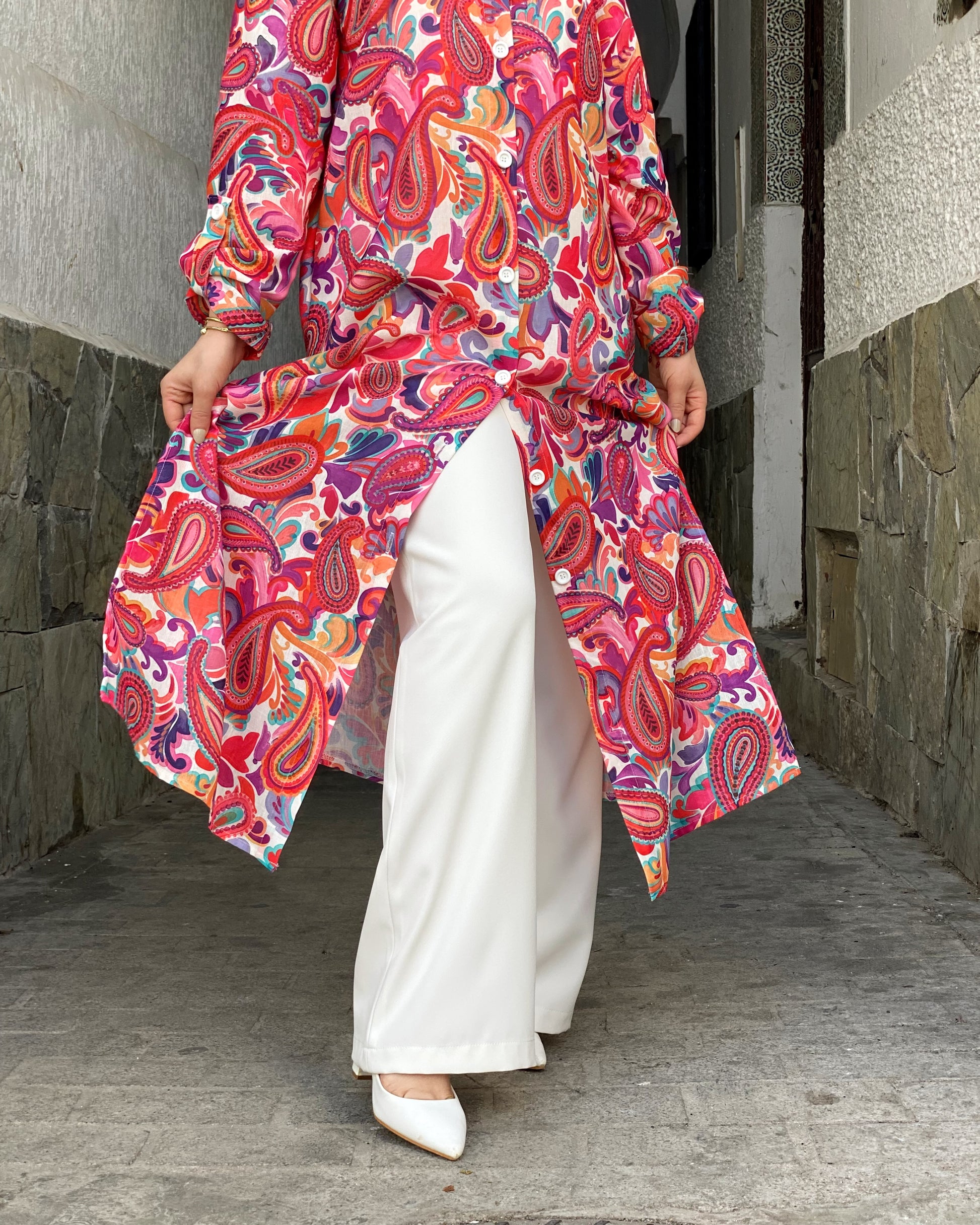 La chemise est fabriquée en tissu le lin de première qualité et le pantalon en tissu crêpe