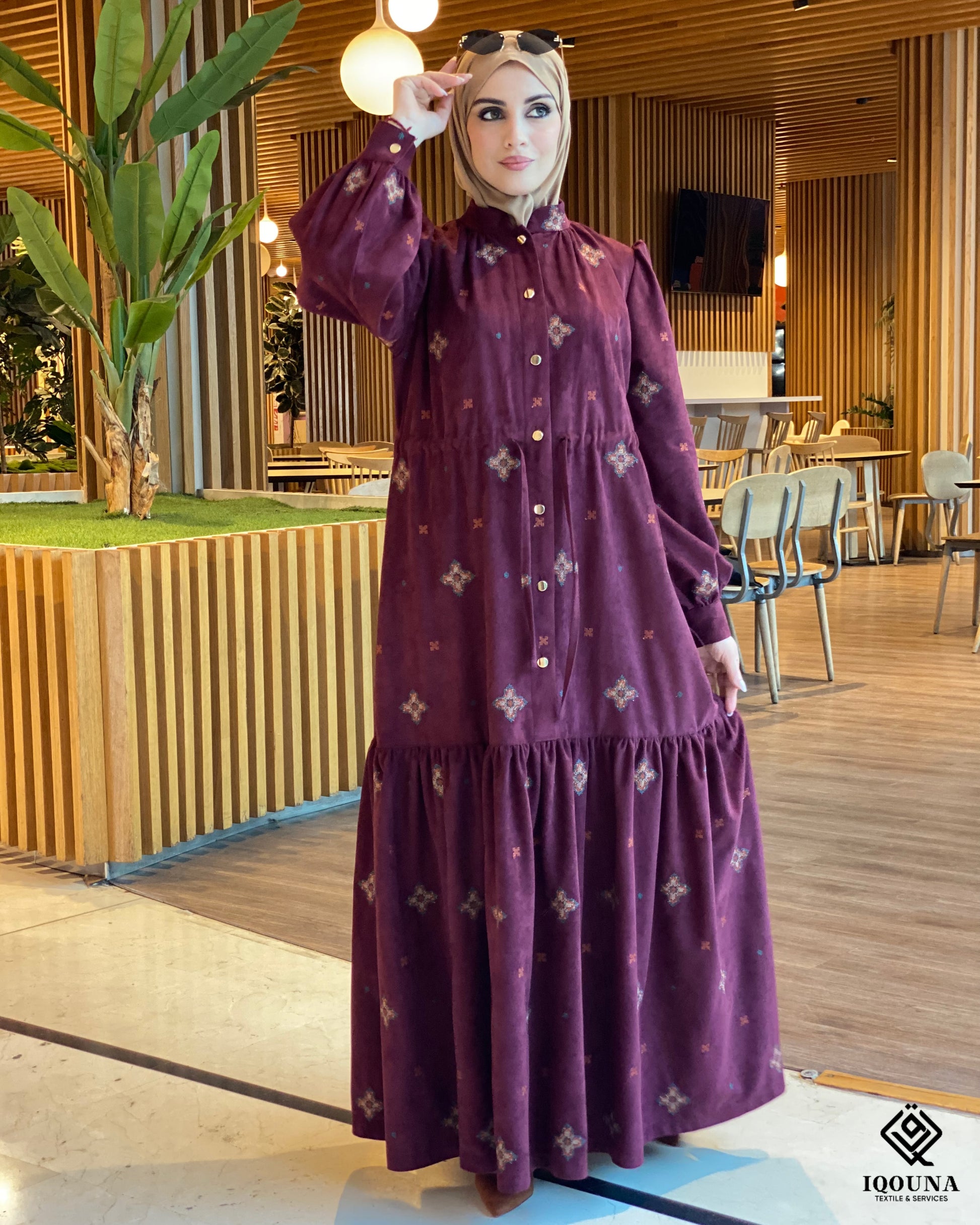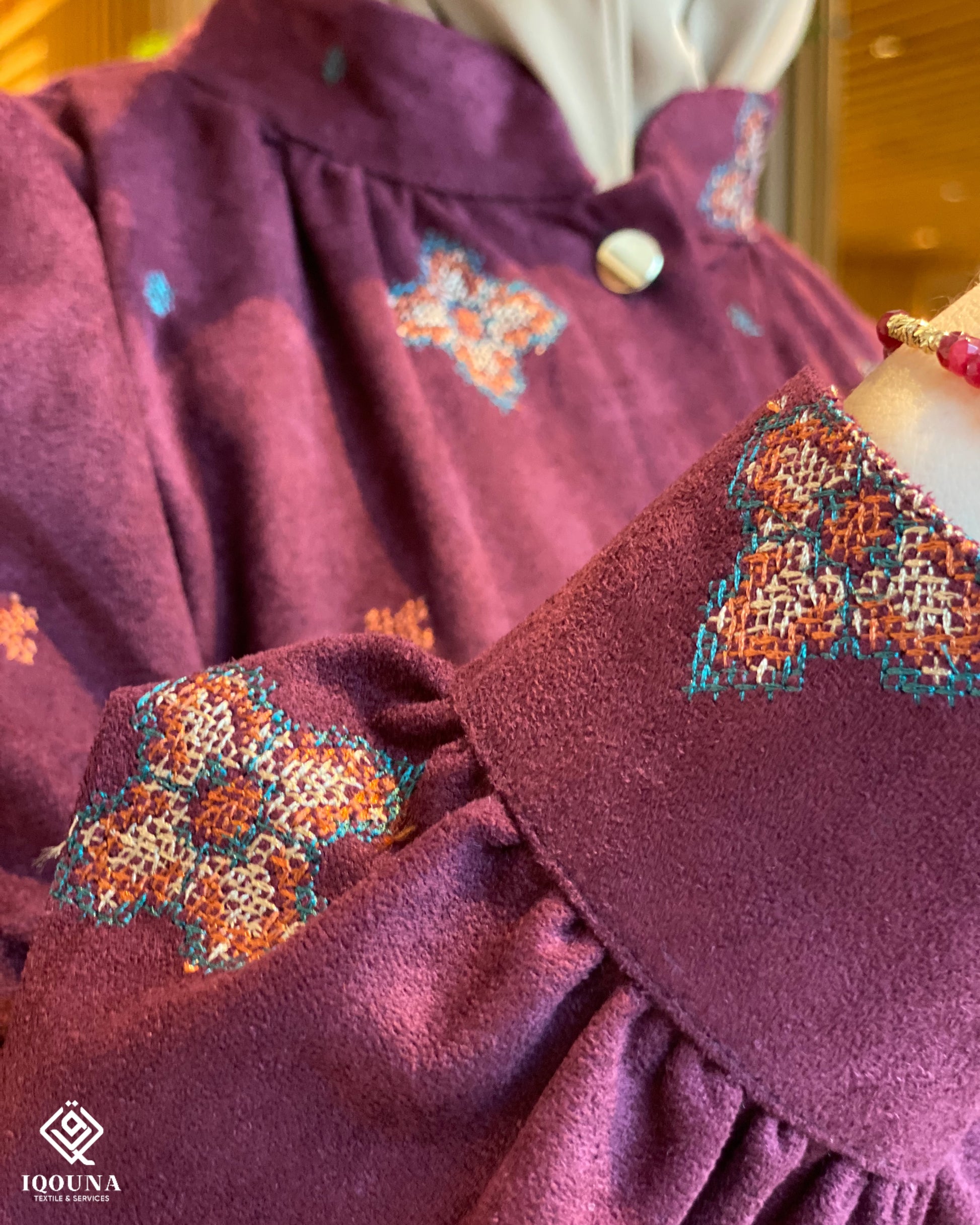 Le tissu brodé : cette robe est confectionnée dans un tissu de qualité supérieure, caractérisé par son toucher velouté qui allie résistance et douceur. Ce qui la rend encore plus unique, ce sont les broderies luxueuses qui ornent le tissu avec une précision extrême, racontant une histoire de maîtrise qui ne se défraie pas.